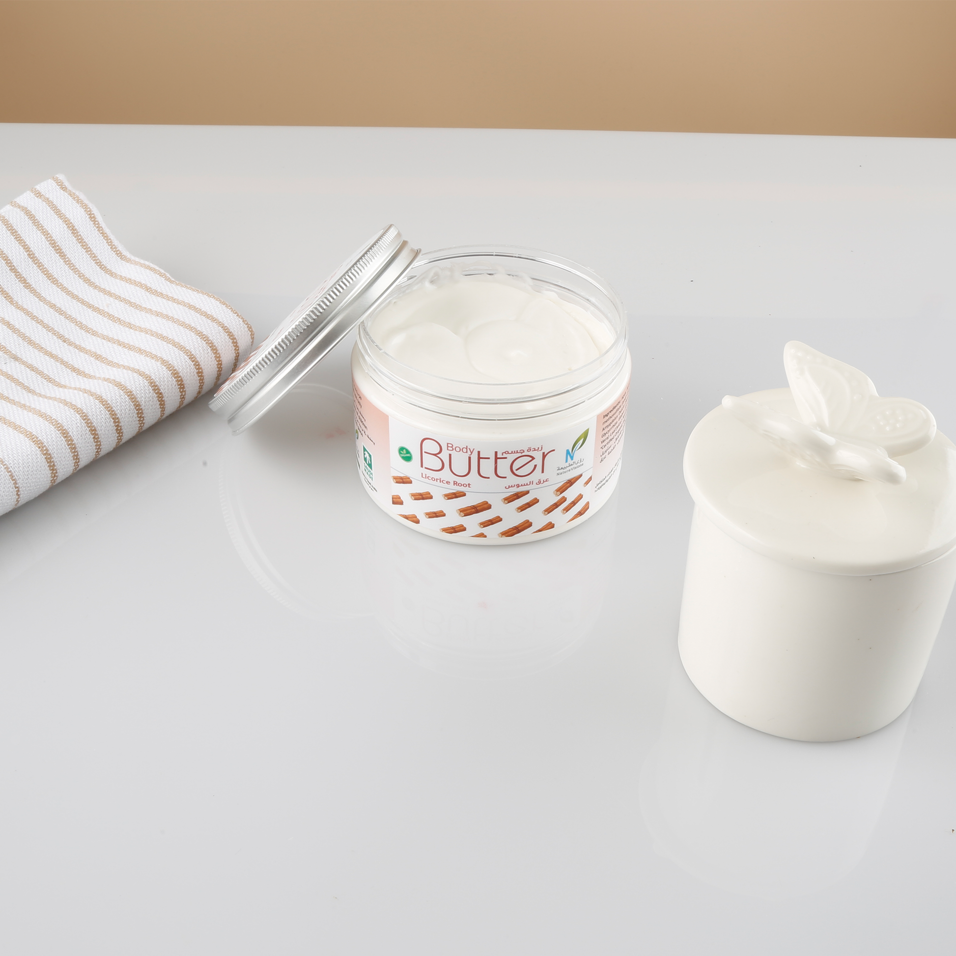 زبدة الجسم عرق السوس طبيعي وعضوي 250g زبدة الجسم بخلاصة زيت عرق السوس الطبيعي مع زبدة الشيا، وزيت الجوجوبا، وزيت اللوز الحلو، وزيت الأفوكادو تركيبة فريدة وغنية لترطيب بشرتك. غني بمضادات الأكسدة لإكساب البشرة حيويتها، وحمايتها من التشققات خالي من البتروكيماويات، والبارابينات، والألوان والمواد الحافظة الضارة، والزيوت المعدنية وكذلك السيليكون. قوام كريمي سهل الإستخدام. يعتبر عرق السوس من المنتجات الطبيعية التي تدخل في صناعة منتجات التجميل المفيدة لتوحيد لون البشرة ونضارتها. مناسب لجميع أنواع البشرة. بالرغم من أن " عرق السوس " طبيعي ونباتي إلاَّ أن بعض الدراسات تقول أن " عرق السوس" غير مناسب للحامل و المرضعة ، ومع ذلك لا توجد معلومات كافية حولها !. |