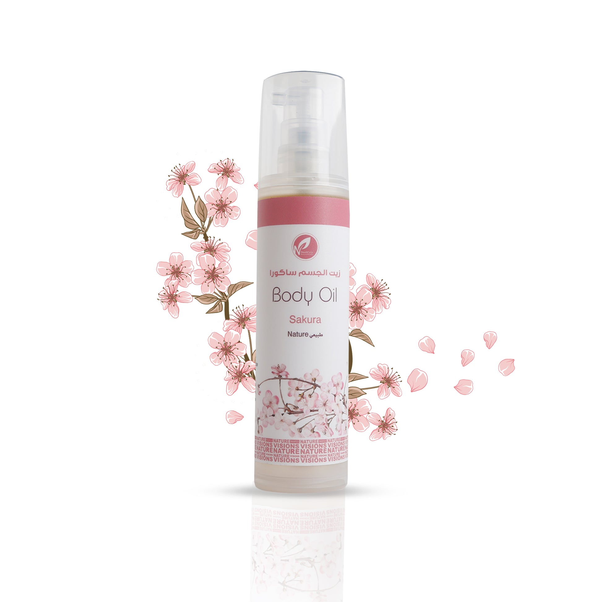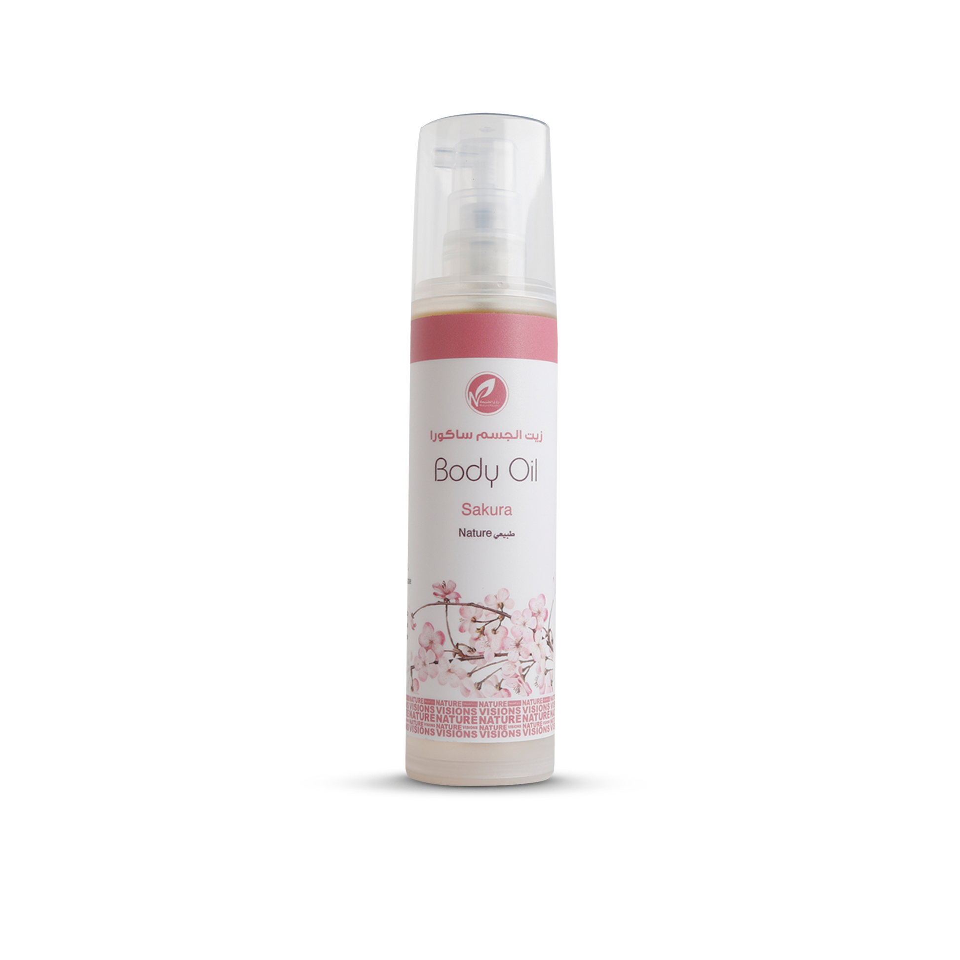 زيت الجسم برائحة الساكورا ( براعم الكرز الياباني ) مع زيت اللوز الحلو وزيت الزيتون وفيتامين E